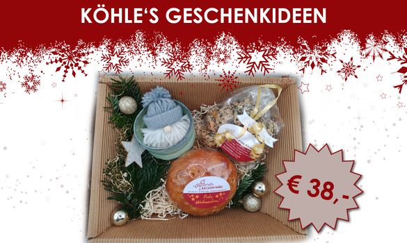 Unsere KÖHLE Christkindl Box ist liebevoll befüllt mit den besten Spezialitäten aus unserer Traditionsbäckerei! Erhältlich in unseren Filialen oder per Lieferung.